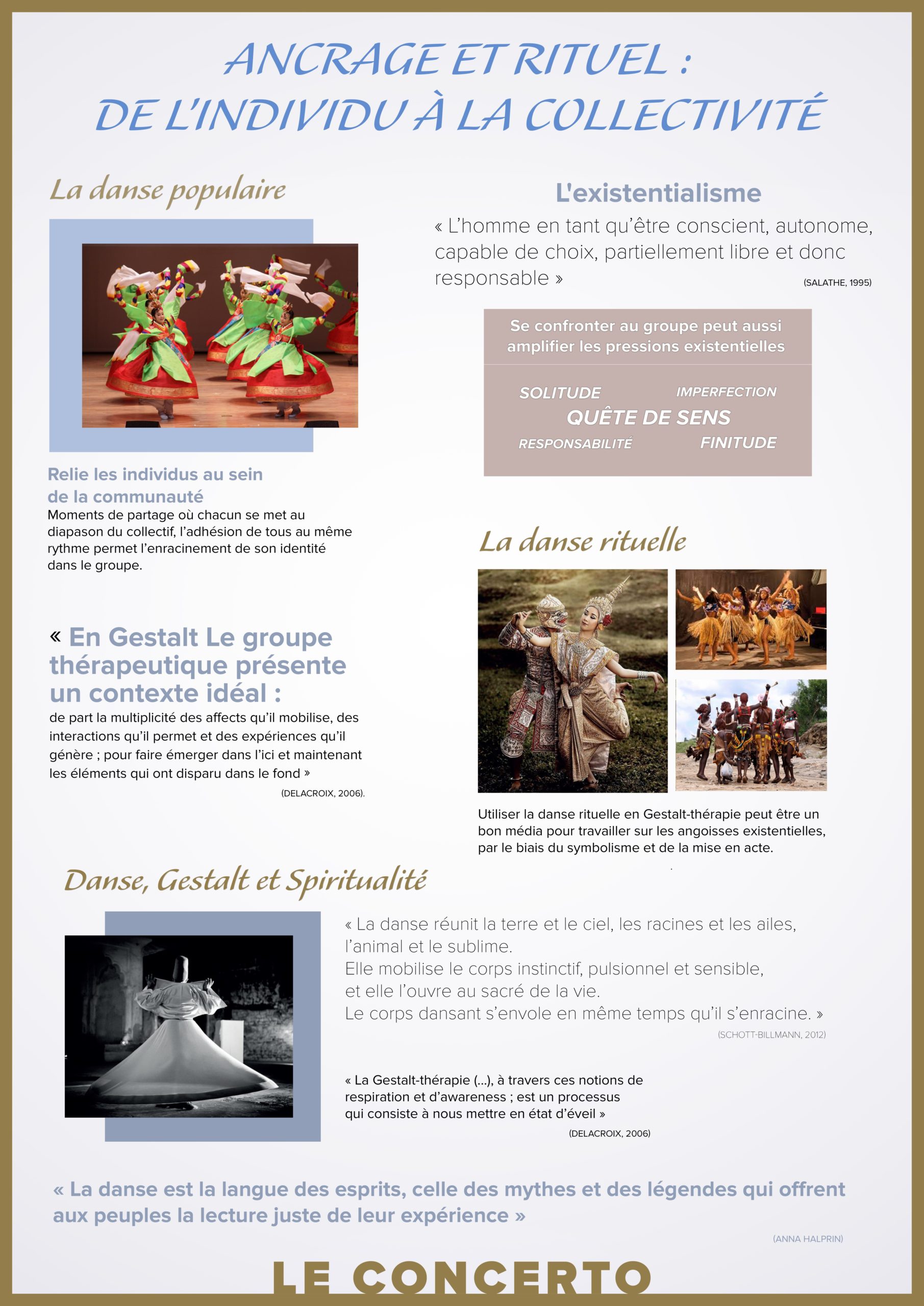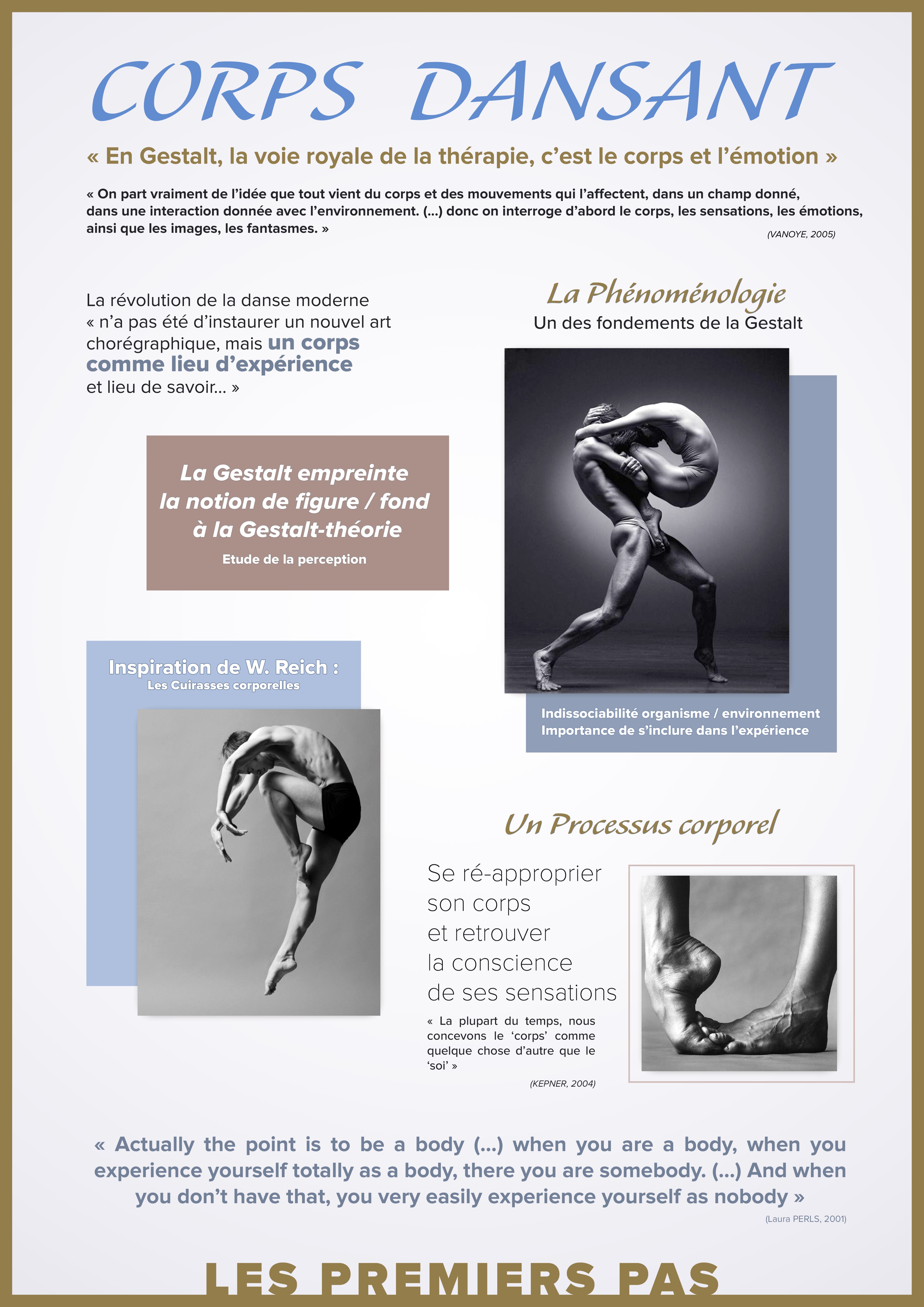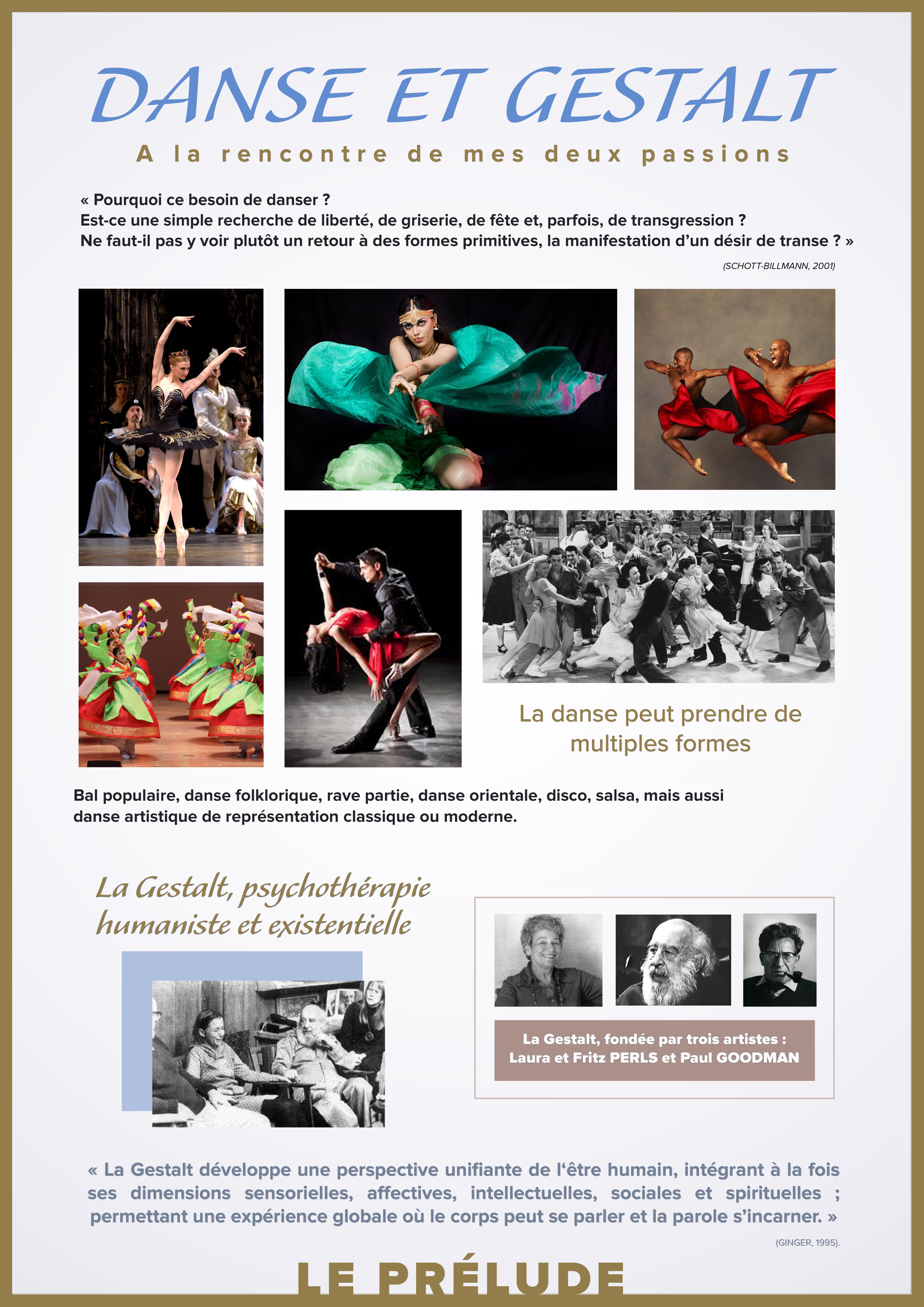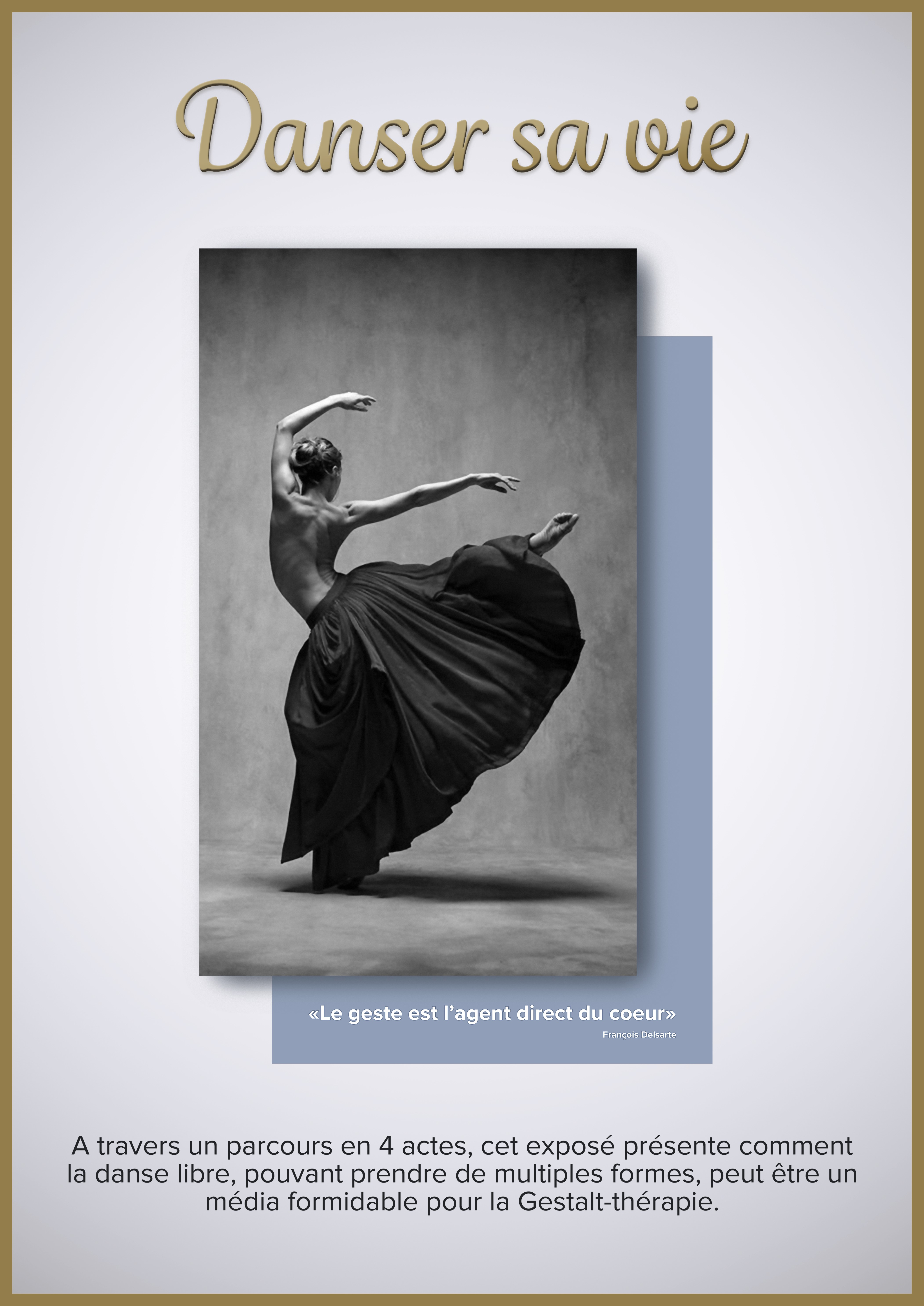 A travers un parcours en 4 actes, cet exposé présente comment la danse libre, pouvant prendre de multiples formes, peut être un média formidable pour la Gestalt-thérapie.